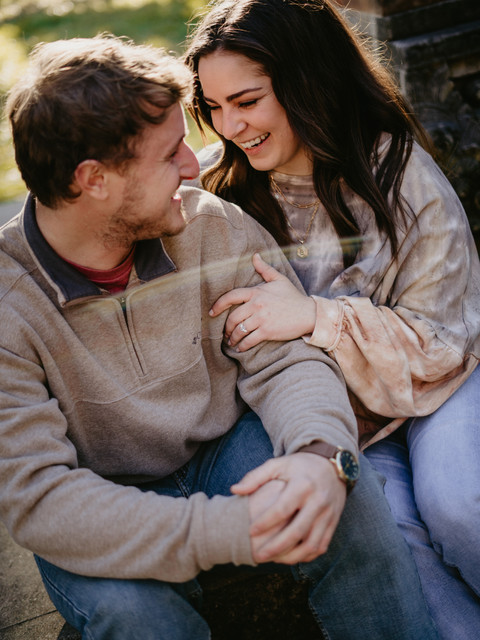 Treg decided that he wanted to propose to Bailey on the lake at Rip Van Winkle Gardens following a tour of the grounds. He’d already gotten permission from Bailey's family and used her grandmother's diamond as one of the stones in her engagement ring. He planned to lead Bailey to end the tour near the beautiful ruins on the lake where Treg would get down on one knee. We decided on Golden hour with the sun setting at their backs, but we still had to figure out how to explain my presence without giving it away.